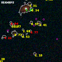 Object #6205 x,y = (2633, 1341) RA, Dec = (01:37:24.576, -8:28:31.08) = (24.35240, -8.47530) BPZ = 0.772 [0.207--4.687] type = 9.00 (SB2_B10) chisq2 = 1.39 ODDS = 0.21 z_cluster = 0.566
