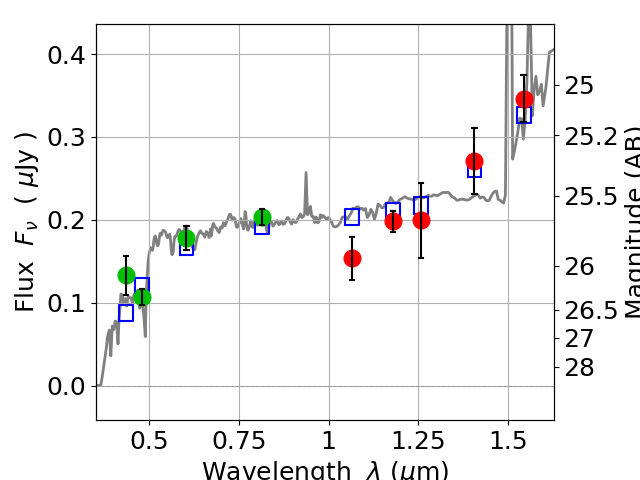 Best viewed in a wide browser window (1200 pixels or more). Download SED & P(z) plots to view larger versions.