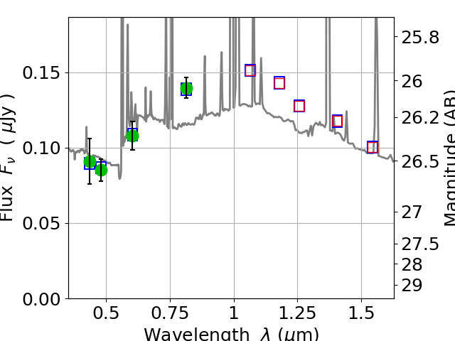 Best viewed in a wide browser window (1200 pixels or more). Download SED & P(z) plots to view larger versions.