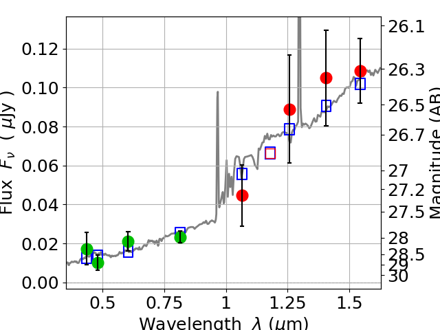 Best viewed in a wide browser window (1200 pixels or more). Download SED & P(z) plots to view larger versions.
