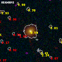 Object #6380 x,y = (1815, 1192) RA, Dec = (01:37:27.888, -8:28:40.08) = (24.36620, -8.47780) BPZ = 0.595 [0.547--0.712] type = 5.20 (ES0_B10 - Sbc_B10) chisq2 = 0.02 ODDS = 0.80 z_cluster = 0.566