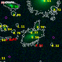 Object #6392 x,y = (3191, 1169) RA, Dec = (01:37:22.320, -8:28:41.52) = (24.34300, -8.47820) BPZ = 0.773 [0.636--1.500] type = 7.60 (SB1_B10 - Scd_B10) chisq2 = 0.08 ODDS = 0.27 z_cluster = 0.566
