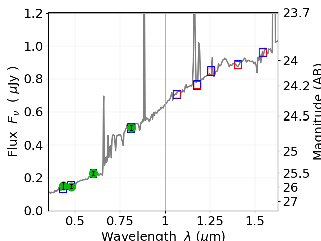 Best viewed in a wide browser window (1200 pixels or more). Download SED & P(z) plots to view larger versions.
