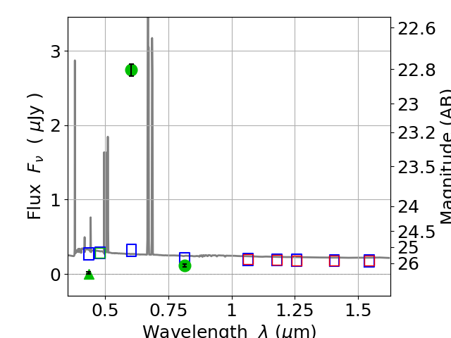 Best viewed in a wide browser window (1200 pixels or more). Download SED & P(z) plots to view larger versions.