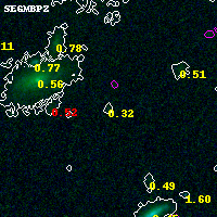 Object #6473 x,y = (3259, 1127) RA, Dec = (01:37:22.056, -8:28:44.04) = (24.34190, -8.47890) BPZ = 0.321 [0.173--3.765] type = 8.10 (SB1_B10 - SB2_B10) chisq2 = 0.49 ODDS = 0.10 z_cluster = 0.566