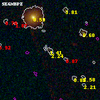 Object #6474 x,y = (1848, 1126) RA, Dec = (01:37:27.744, -8:28:44.04) = (24.36560, -8.47890) BPZ = 1.411 [1.180--2.486] type = 10.70 (SB11_A_0_l - SB3_B10) chisq2 = 0.81 ODDS = 0.34 z_cluster = 0.566