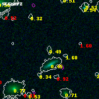 Object #6552 x,y = (3297, 1060) RA, Dec = (01:37:21.888, -8:28:48.00) = (24.34120, -8.48000) BPZ = 0.486 [0.183--3.446] type = 8.60 (SB2_B10 - SB1_B10) chisq2 = 0.01 ODDS = 0.17 z_cluster = 0.566