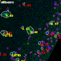 Object #6604 x,y = (3616, 1003) RA, Dec = (01:37:20.616, -8:28:51.24) = (24.33590, -8.48090) BPZ = 0.476 [0.381--4.482] type = 5.10 (ES0_B10 - Sbc_B10) chisq2 = 0.05 ODDS = 0.77 z_cluster = 0.566