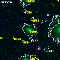 Object #6609 x,y = (2759, 993) RA, Dec = (01:37:24.072, -8:28:51.96) = (24.35030, -8.48110) BPZ = 0.603 [0.525--0.675] type = 5.00 (ES0_B10) chisq2 = 0.00 ODDS = 0.91 z_cluster = 0.566