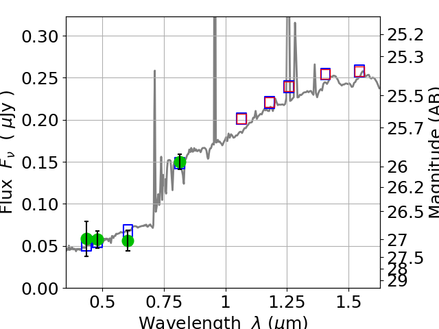 Best viewed in a wide browser window (1200 pixels or more). Download SED & P(z) plots to view larger versions.