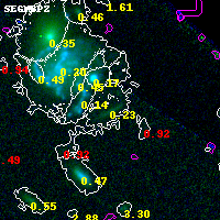 Object #675 x,y = (3112, 4057) RA, Dec = (01:37:22.632, -8:25:48.36) = (24.34430, -8.43010) BPZ = 0.234 [0.119--3.029] type = 8.40 (SB1_B10 - SB2_B10) chisq2 = 0.00 ODDS = 0.11 z_cluster = 0.566