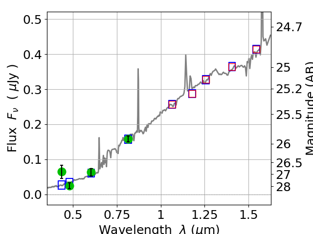 Best viewed in a wide browser window (1200 pixels or more). Download SED & P(z) plots to view larger versions.