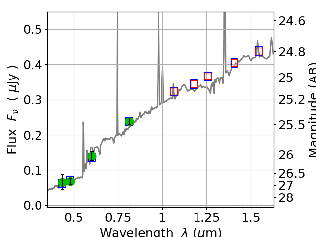 Best viewed in a wide browser window (1200 pixels or more). Download SED & P(z) plots to view larger versions.