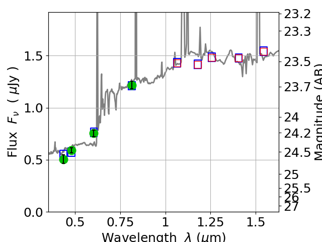 Best viewed in a wide browser window (1200 pixels or more). Download SED & P(z) plots to view larger versions.