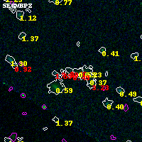 Object #6870 x,y = (2064, 847) RA, Dec = (01:37:26.880, -8:29:00.96) = (24.36200, -8.48360) BPZ = 0.395 [0.202--3.824] type = 8.70 (SB2_B10 - SB1_B10) chisq2 = 1.76 ODDS = 0.14 z_cluster = 0.566