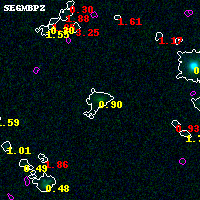 Object #6880 x,y = (2498, 845) RA, Dec = (01:37:25.128, -8:29:00.96) = (24.35470, -8.48360) BPZ = 0.904 [0.665--1.382] type = 6.10 (Sbc_B10 - Scd_B10) chisq2 = 0.00 ODDS = 0.35 z_cluster = 0.566