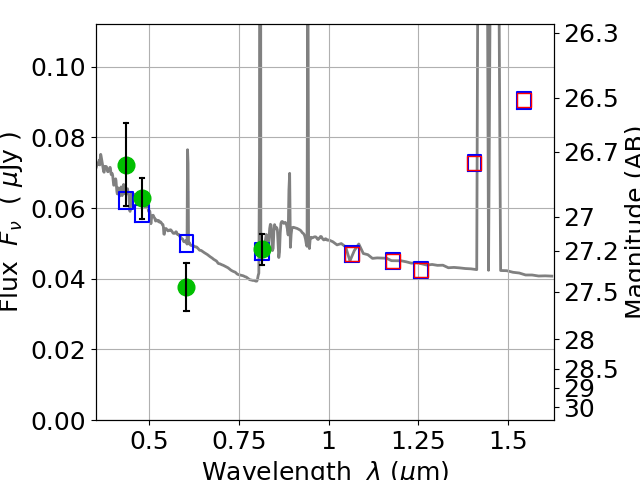 Best viewed in a wide browser window (1200 pixels or more). Download SED & P(z) plots to view larger versions.