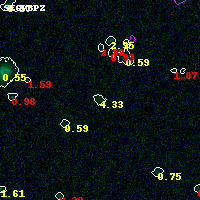 Object #7057 x,y = (2840, 708) RA, Dec = (01:37:23.736, -8:29:09.24) = (24.34890, -8.48590) BPZ = 4.328 [0.438--4.600] type = 8.20 (SB1_B10 - SB2_B10) chisq2 = 0.00 ODDS = 0.61 z_cluster = 0.566