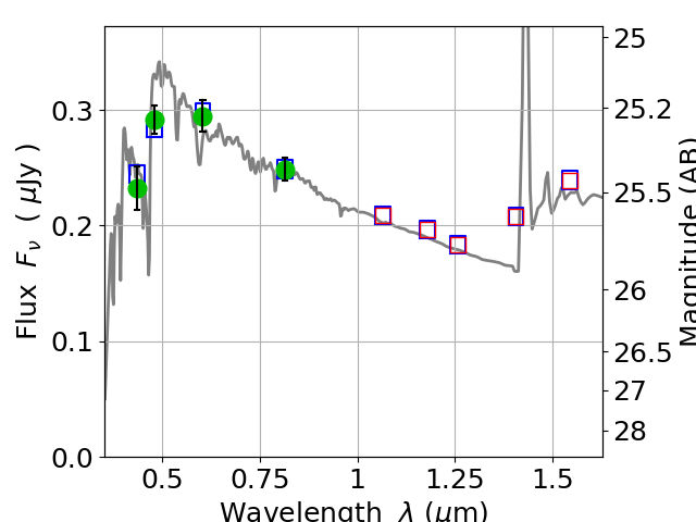 Best viewed in a wide browser window (1200 pixels or more). Download SED & P(z) plots to view larger versions.
