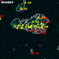Object #7277 x,y = (2936, 473) RA, Dec = (01:37:23.352, -8:29:23.28) = (24.34730, -8.48980) BPZ = 0.920 [0.200--1.762] type = 9.90 (SB3_B10 - SB2_B10) chisq2 = 1.53 ODDS = 0.33 z_cluster = 0.566