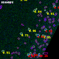 Object #7337 x,y = (3360, 472) RA, Dec = (01:37:21.648, -8:29:23.28) = (24.34020, -8.48980) BPZ = 0.963 [0.196--2.476] type = 9.70 (SB3_B10 - SB2_B10) chisq2 = 0.20 ODDS = 0.13 z_cluster = 0.566