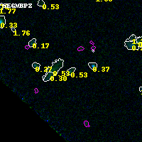 Object #7413 x,y = (2373, 392) RA, Dec = (01:37:25.632, -8:29:27.96) = (24.35680, -8.49110) BPZ = 0.528 [0.209--3.653] type = 8.90 (SB2_B10 - SB1_B10) chisq2 = 0.00 ODDS = 0.09 z_cluster = 0.566