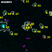 Object #7595 x,y = (2724, 149) RA, Dec = (01:37:24.216, -8:29:42.72) = (24.35090, -8.49520) BPZ = 0.172 [0.117--3.151] type = 9.10 (SB2_B10 - SB3_B10) chisq2 = 0.00 ODDS = 0.06 z_cluster = 0.566