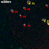 Object #1 x,y = (1897, 1070) RA, Dec = (01:37:27.552, -8:28:47.28) = (24.36480, -8.47980) BPZ = 2.782 [1.897--3.249] type = 9.40 (SB2_B10 - SB3_B10) chisq2 = 1.63 ODDS = 0.43 z_cluster = 0.566