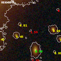 Object #1033 x,y = (2658, 2342) RA, Dec = (01:37:24.480, -8:27:30.96) = (24.35200, -8.45860) BPZ = 1.592 [0.382--3.025] type = 10.30 (SB3_B10 - SB11_A_0_l) chisq2 = 1.58 ODDS = 0.20 z_cluster = 0.566