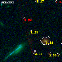 Object #1038 x,y = (1453, 2528) RA, Dec = (01:37:29.352, -8:27:19.80) = (24.37230, -8.45550) BPZ = 1.227 [0.395--3.097] type = 9.40 (SB2_B10 - SB3_B10) chisq2 = 0.33 ODDS = 0.12 z_cluster = 0.566