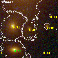 Object #1054 x,y = (2549, 2318) RA, Dec = (01:37:24.912, -8:27:32.40) = (24.35380, -8.45900) BPZ = 0.423 [0.378--0.536] type = 1.00 (Ell7_A_0) chisq2 = 0.56 ODDS = 0.84 z_cluster = 0.566