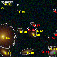Object #1086 x,y = (2166, 3066) RA, Dec = (01:37:26.472, -8:26:47.76) = (24.36030, -8.44660) BPZ = 3.764 [0.242--4.364] type = 9.70 (SB3_B10 - SB2_B10) chisq2 = 1.02 ODDS = 0.29 z_cluster = 0.566
