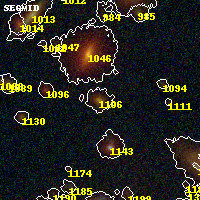 Object #1106 x,y = (2119, 2257) RA, Dec = (01:37:26.664, -8:27:36.36) = (24.36110, -8.46010) BPZ = 0.463 [0.373--4.424] type = 4.00 (Ell4_A_0) chisq2 = 0.44 ODDS = 0.78 z_cluster = 0.566