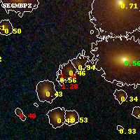 Object #1118 x,y = (2420, 2232) RA, Dec = (01:37:25.440, -8:27:37.80) = (24.35600, -8.46050) BPZ = 0.455 [0.362--0.662] type = 2.00 (Ell6_A_0) chisq2 = 0.82 ODDS = 0.55 z_cluster = 0.566
