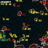 Object #1145 x,y = (1992, 2220) RA, Dec = (01:37:27.168, -8:27:38.52) = (24.36320, -8.46070) BPZ = 1.363 [0.533--2.461] type = 7.30 (Scd_B10 - SB1_B10) chisq2 = 1.25 ODDS = 0.21 z_cluster = 0.566