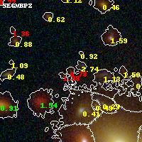 Object #1190 x,y = (2073, 2163) RA, Dec = (01:37:26.832, -8:27:41.76) = (24.36180, -8.46160) BPZ = 0.775 [0.456--5.564] type = 7.40 (Scd_B10 - SB1_B10) chisq2 = 2.10 ODDS = 0.13 z_cluster = 0.566