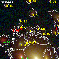 Object #1191 x,y = (2120, 2156) RA, Dec = (01:37:26.664, -8:27:42.12) = (24.36110, -8.46170) BPZ = 1.130 [0.055--1.252] type = 9.30 (SB2_B10 - SB3_B10) chisq2 = 0.53 ODDS = 0.84 z_cluster = 0.566