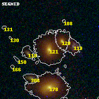 Object #121 x,y = (3253, 3496) RA, Dec = (01:37:22.080, -8:26:21.84) = (24.34200, -8.43940) BPZ = 0.540 [0.476--0.570] type = 4.20 (Ell4_A_0 - ES0_B10) chisq2 = 0.07 ODDS = 0.97 z_cluster = 0.566
