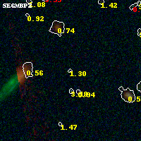 Object #1211 x,y = (1614, 2147) RA, Dec = (01:37:28.704, -8:27:42.84) = (24.36960, -8.46190) BPZ = 1.305 [0.314--4.213] type = 9.20 (SB2_B10 - SB3_B10) chisq2 = 0.82 ODDS = 0.07 z_cluster = 0.566
