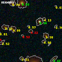 Object #1214 x,y = (2906, 2139) RA, Dec = (01:37:23.472, -8:27:43.20) = (24.34780, -8.46200) BPZ = 4.219 [0.753--4.554] type = 9.40 (SB2_B10 - SB3_B10) chisq2 = 1.12 ODDS = 0.56 z_cluster = 0.566