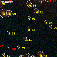 Object #1233 x,y = (2491, 2109) RA, Dec = (01:37:25.152, -8:27:45.00) = (24.35480, -8.46250) BPZ = 0.491 [0.263--4.252] type = 7.10 (Scd_B10 - SB1_B10) chisq2 = 0.71 ODDS = 0.26 z_cluster = 0.566