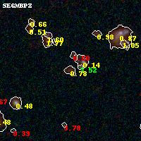 Object #127 x,y = (1921, 3526) RA, Dec = (01:37:27.456, -8:26:20.04) = (24.36440, -8.43890) BPZ = 0.779 [0.441--0.960] type = 8.00 (SB1_B10) chisq2 = 0.43 ODDS = 0.46 z_cluster = 0.566