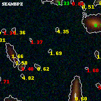 Best viewed in a wide browser window (1200 pixels or more). Download SED & P(z) plots to view larger versions.