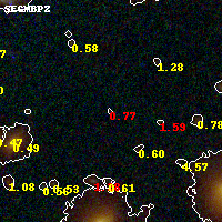 Object #1283 x,y = (2378, 2053) RA, Dec = (01:37:25.608, -8:27:48.60) = (24.35670, -8.46350) BPZ = 0.768 [0.327--5.550] type = 8.10 (SB1_B10 - SB2_B10) chisq2 = 1.48 ODDS = 0.07 z_cluster = 0.566