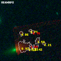 Object #132 x,y = (1374, 3512) RA, Dec = (01:37:29.664, -8:26:20.76) = (24.37360, -8.43910) BPZ = 2.712 [0.172--3.258] type = 8.00 (SB1_B10) chisq2 = 0.12 ODDS = 0.17 z_cluster = 0.566