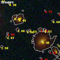 Object #1333 x,y = (2327, 1987) RA, Dec = (01:37:25.824, -8:27:52.20) = (24.35760, -8.46450) BPZ = 0.526 [0.198--3.822] type = 7.90 (SB1_B10 - Scd_B10) chisq2 = 0.36 ODDS = 0.15 z_cluster = 0.566