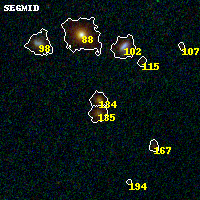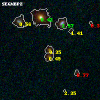 Object #134 x,y = (3037, 3500) RA, Dec = (01:37:22.944, -8:26:21.48) = (24.34560, -8.43930) BPZ = 0.355 [0.280--4.185] type = 4.00 (Ell4_A_0) chisq2 = 0.19 ODDS = 0.72 z_cluster = 0.566