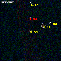 Object #1341 x,y = (1600, 1981) RA, Dec = (01:37:28.752, -8:27:52.56) = (24.36980, -8.46460) BPZ = 0.593 [0.230--4.597] type = 8.70 (SB2_B10 - SB1_B10) chisq2 = 0.13 ODDS = 0.08 z_cluster = 0.566