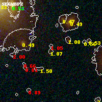 Object #1359 x,y = (2252, 1966) RA, Dec = (01:37:26.112, -8:27:53.64) = (24.35880, -8.46490) BPZ = 1.069 [0.327--5.381] type = 7.40 (Scd_B10 - SB1_B10) chisq2 = 0.58 ODDS = 0.14 z_cluster = 0.566
