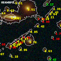 Object #1365 x,y = (2927, 1958) RA, Dec = (01:37:23.400, -8:27:54.00) = (24.34750, -8.46500) BPZ = 0.848 [0.375--5.680] type = 6.40 (Sbc_B10 - Scd_B10) chisq2 = 0.07 ODDS = 0.17 z_cluster = 0.566